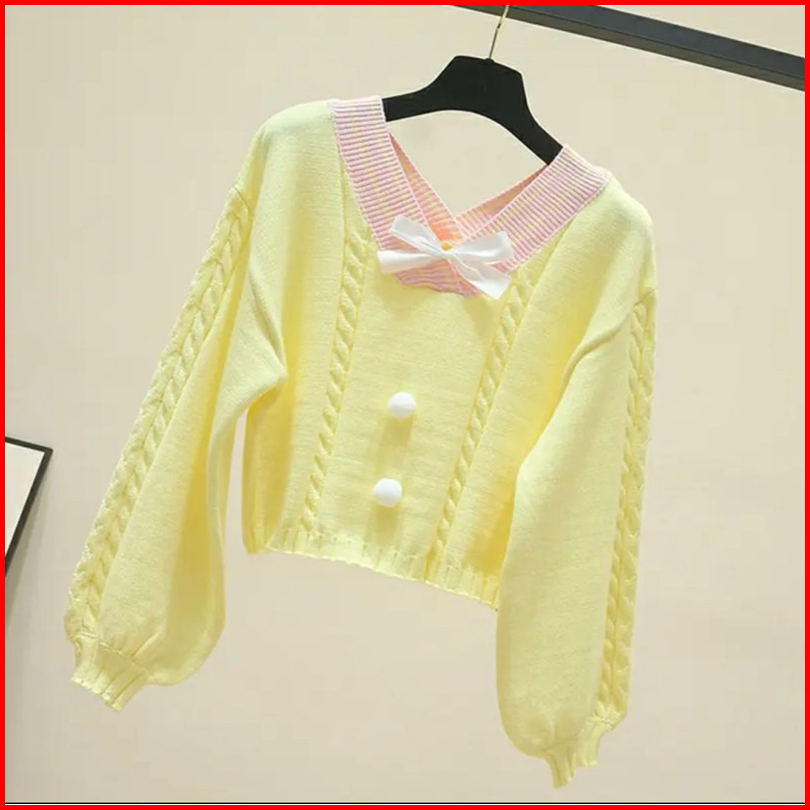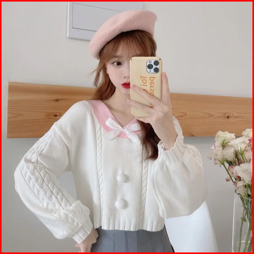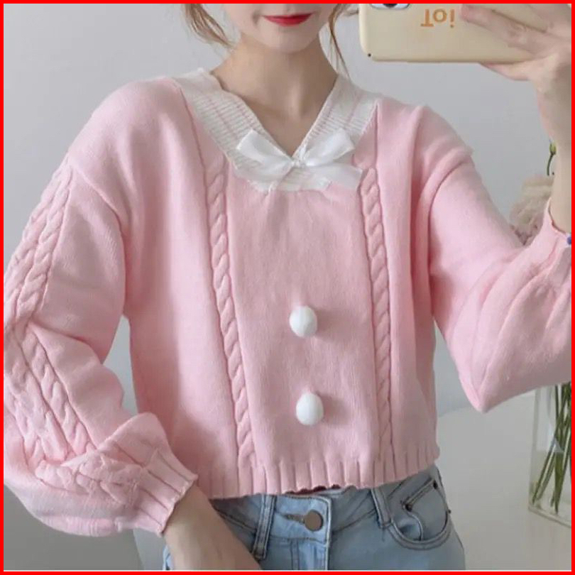 Sweater Kawai Vintage Pita Kerah V Premium Tebal