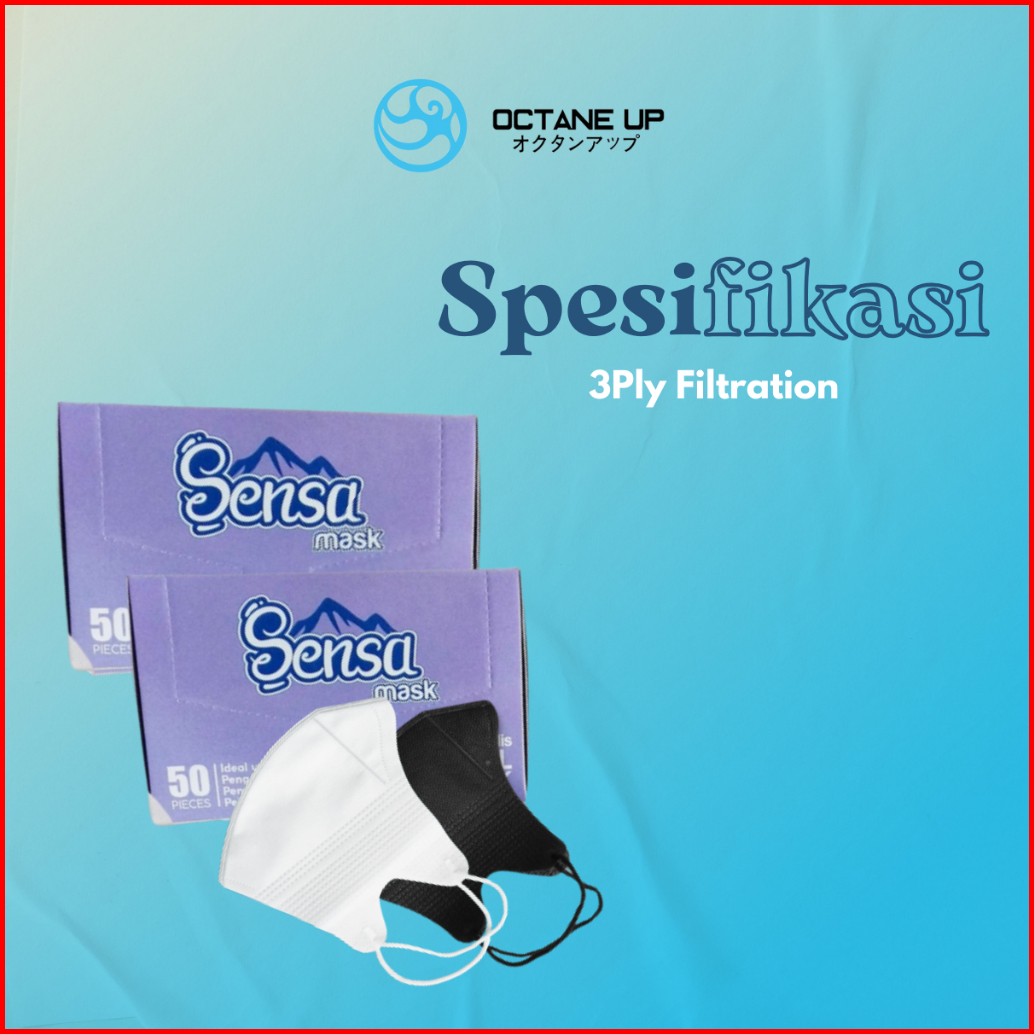 Masker Duckbill Sensa 3ply Earloop 1 Box Isi 50 Pcs Premium Octane Up