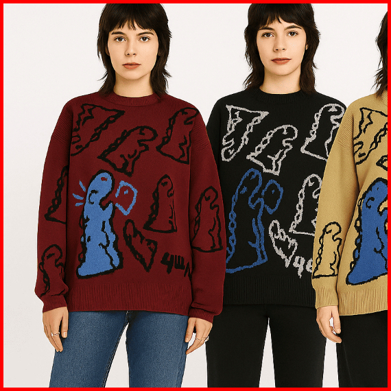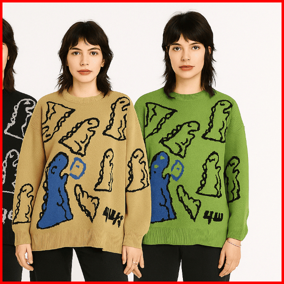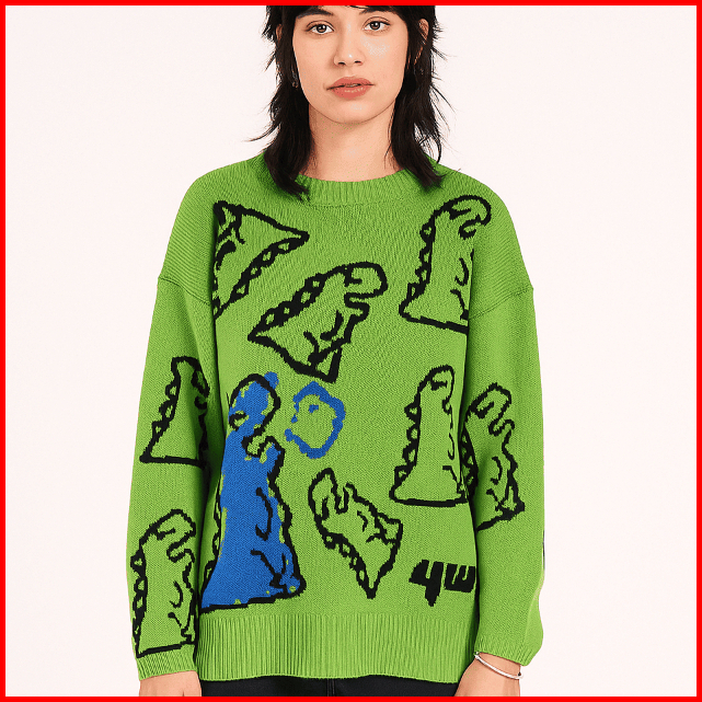 Dino Sweater Rajut Motif Dino Trendi Atasan Wanita Terupdate 2024- Erze Store