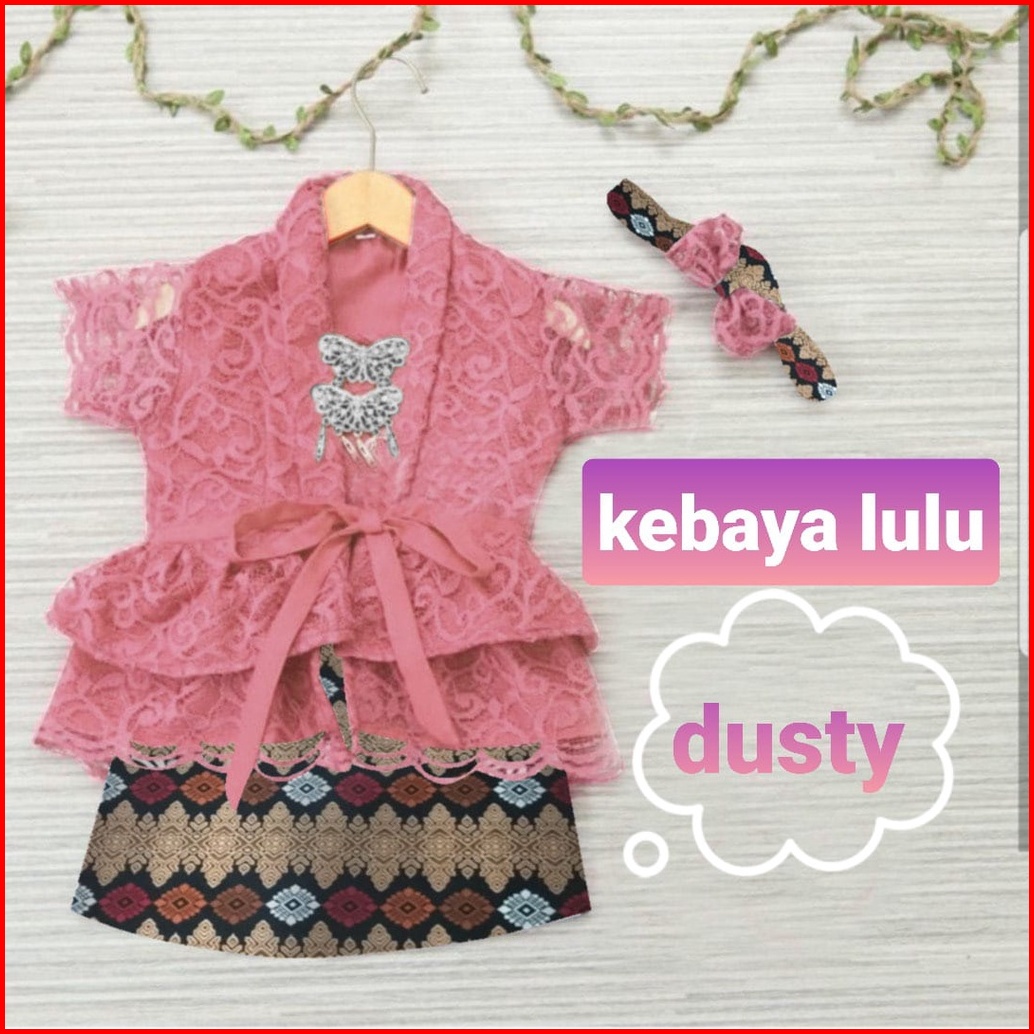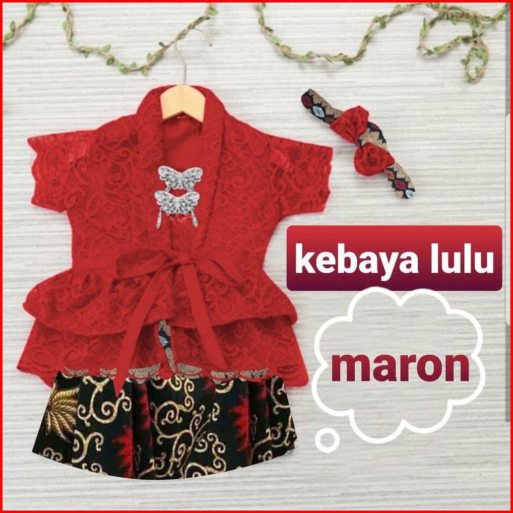 Kebaya Anak Brukat Modern Gratis Bando Setelan Baju Brokat Rok Batik Bayi Balita Kutu Baru Baju Kebaya Anak Perempuan Mo