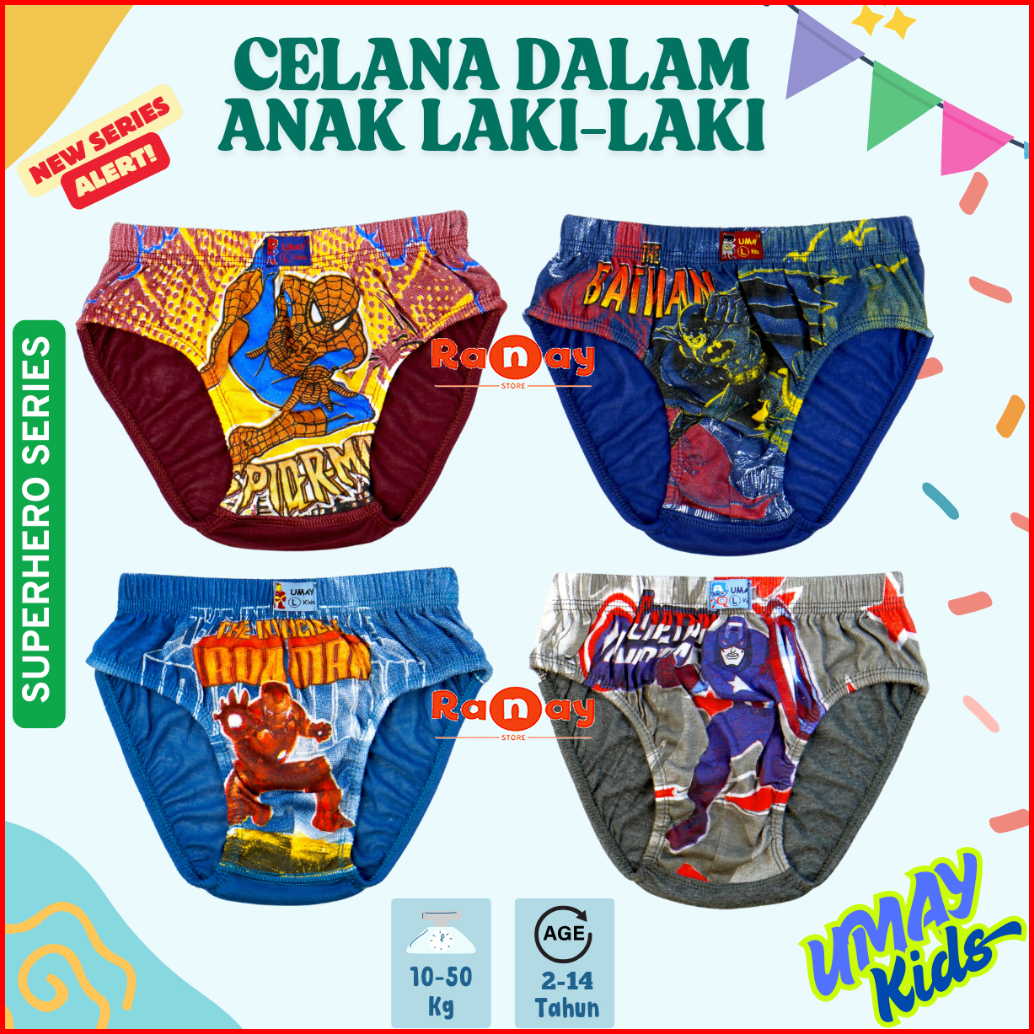 Umay Kids Celana Dalam Anak Laki-laki Boys Briefs Cotton Blend Motif Dan Polos Katun Kids Boys