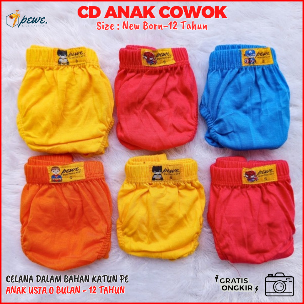 1 Lusin Celana Dalam Anak Laki-laki Motif Polos Ukuran S - 3l Usia 1-12 Tahun Sempak Anak Cowok