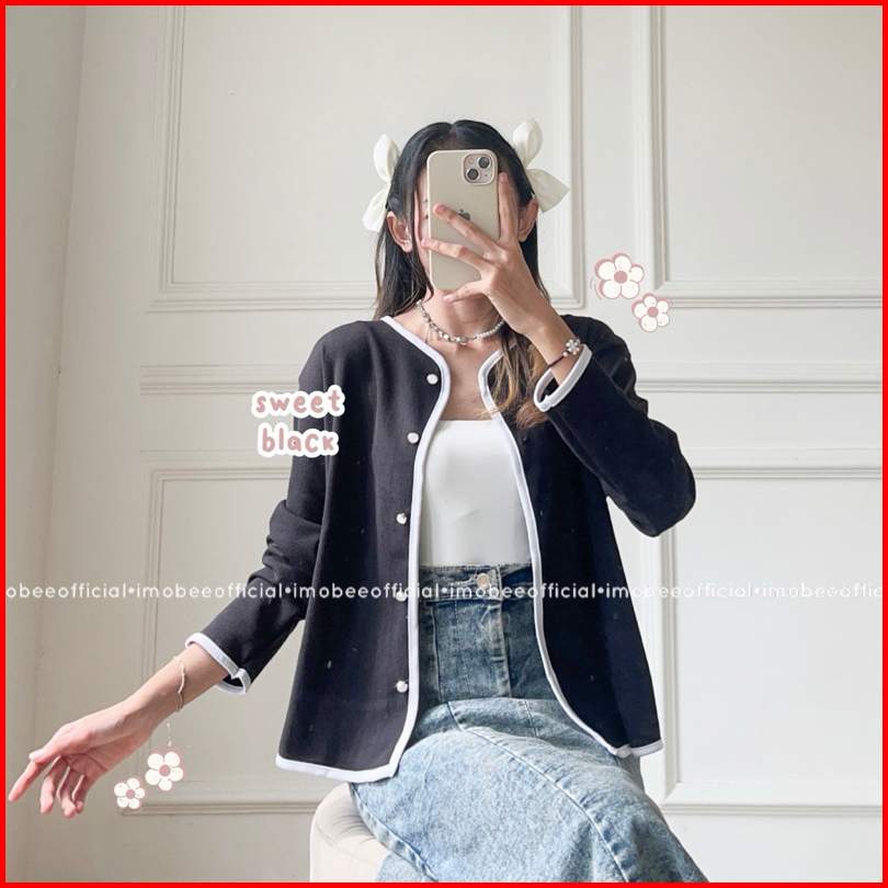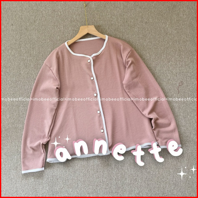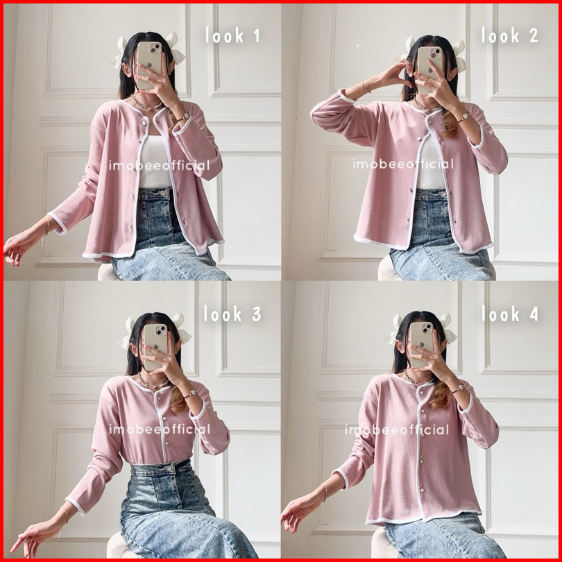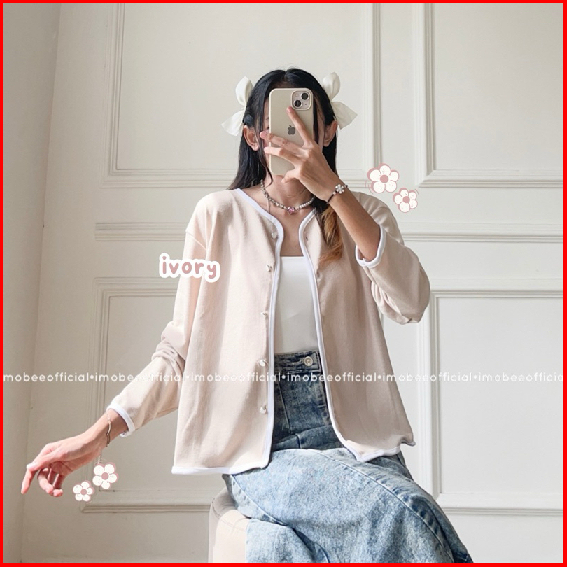 Imobeeofficial Annette List Outer Cardigan Knit Atasan Blouse Wanita Basic Daily Polos Simpel Korea