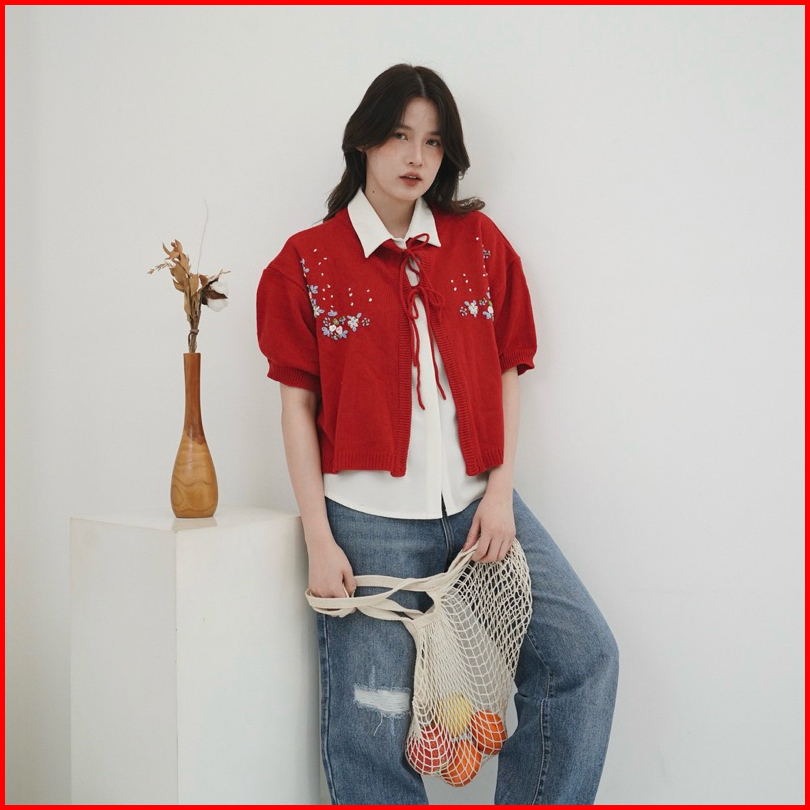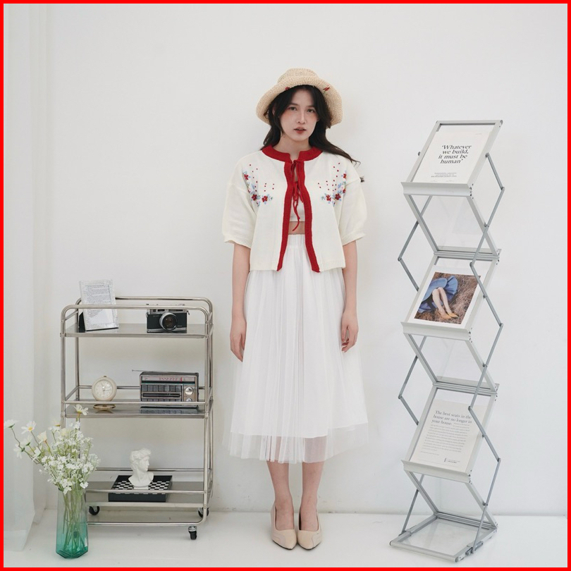 Immaso Vintage Roses Cardigan Knitted - Rajut Vintage Motif Bordir Bunga Bunga