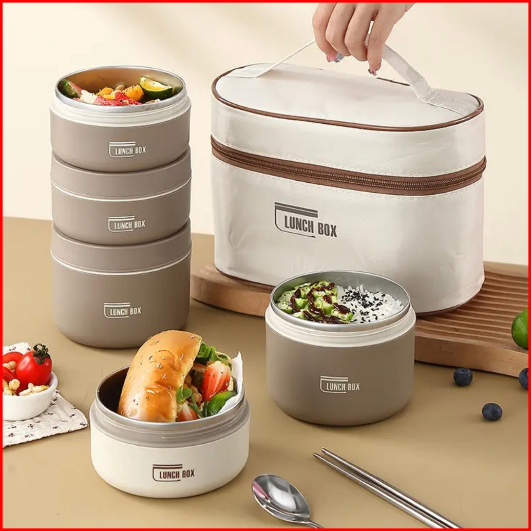 Pumer Kotak Makan Stainless Steel Tahan Panas Lunch Box Set Portabel Bento Container Sup Tahan Bocor Kerja Siswa Piknik