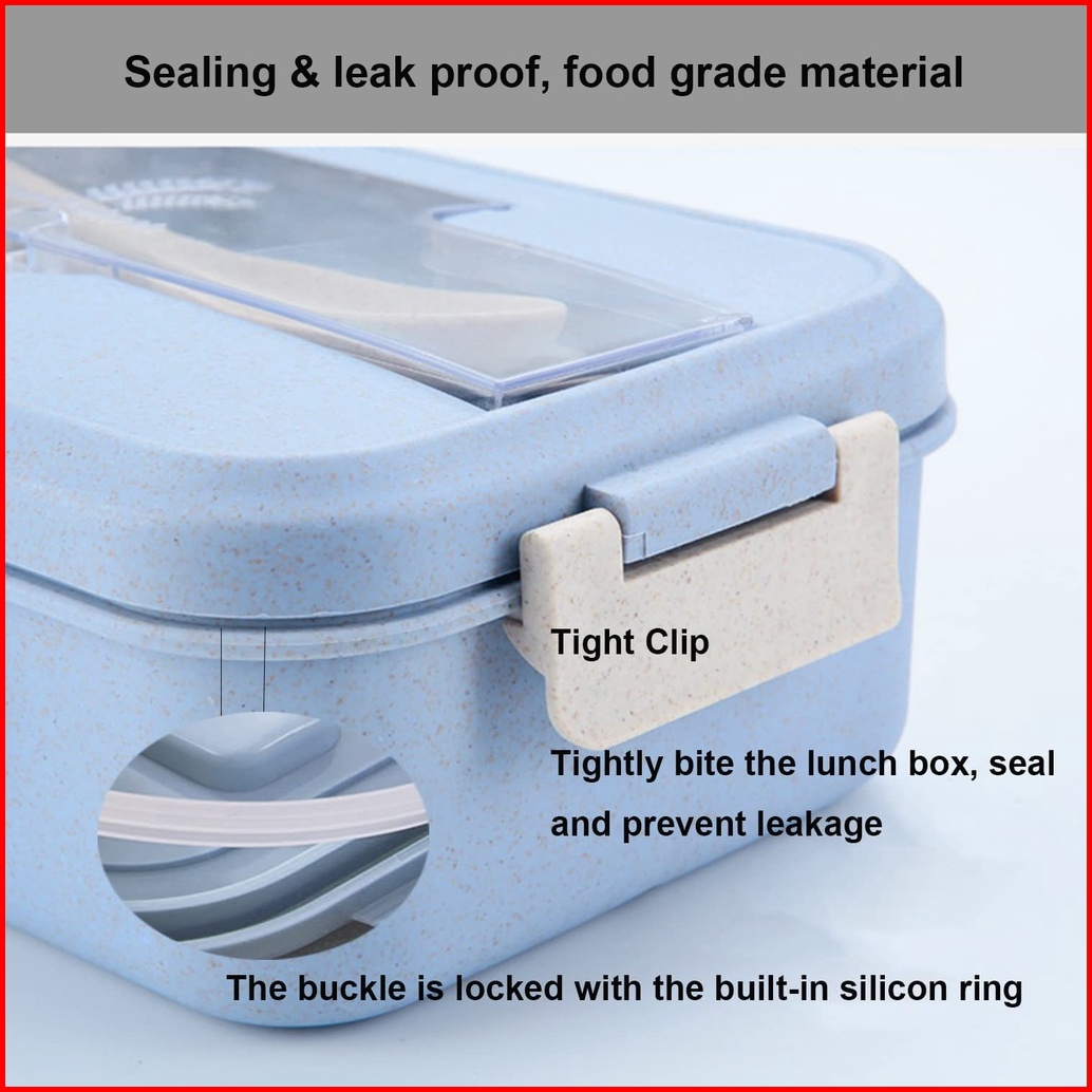 Paus Biru - Kotak Bekal Makan Siang Jerami Gandum 1000ml Lunch Box Set Alat Makan