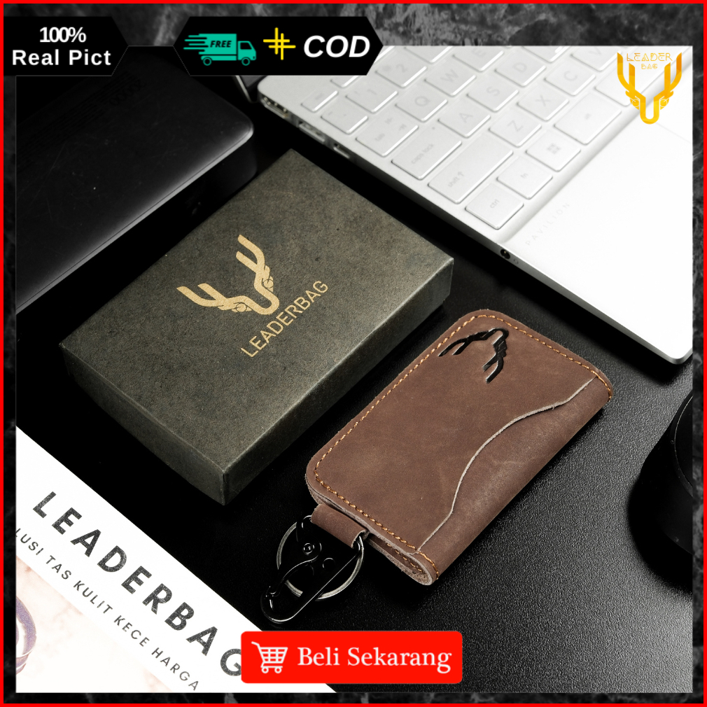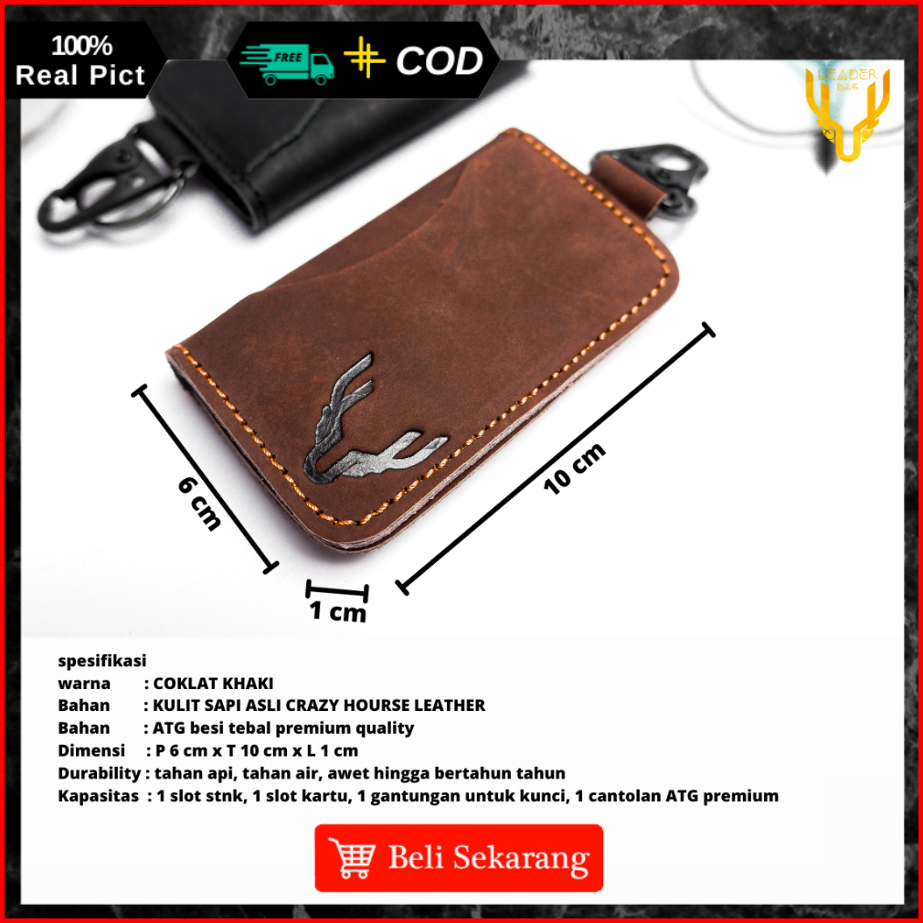 Dompet Stnk Mobil Kulit Sapi Asli Leaderbag Hitam Coklat Waterproof Gantungan Kunci Motor Premium
