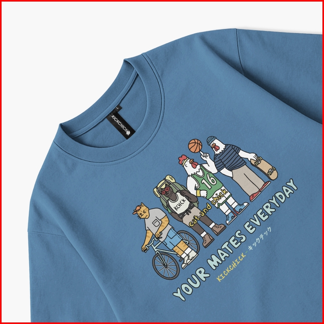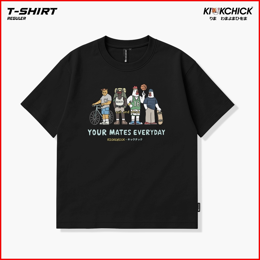 Kickchick Tshirt Reguler Kaos Cat And Chick Black Steel Blue Kaos Lengan Pendek Atasan Kc-ts221