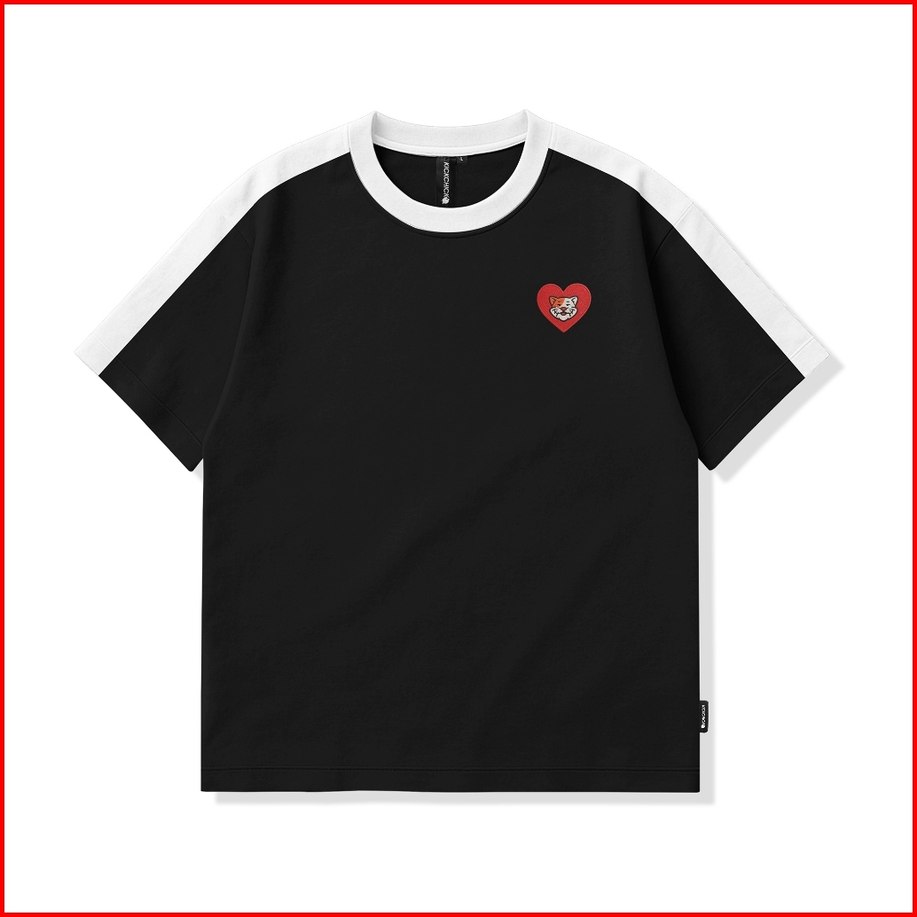 Kickchick Reguler Shoulder Logo Cat Love Embroidery Black White Kaos Lengan Pendek Atasan Bordir Kc-ts-shd-cle