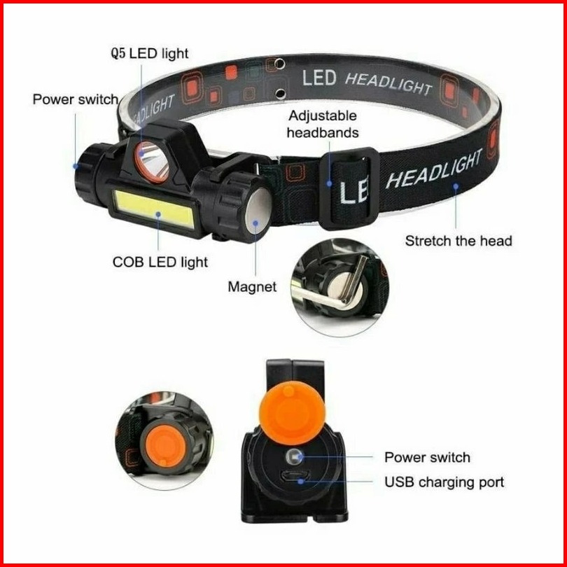 Hm8 Senter Kepala 1 Mata Terang Jauh Dekat High Power Headlamp Senter Kepala 5 Lampu Headlamp