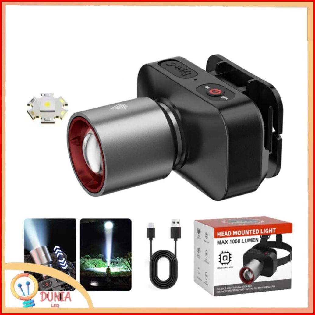 Senter Kepala Cahaya Maksimal 60w Recharger Type C Fokus Penyebaran Zoom Ms-42