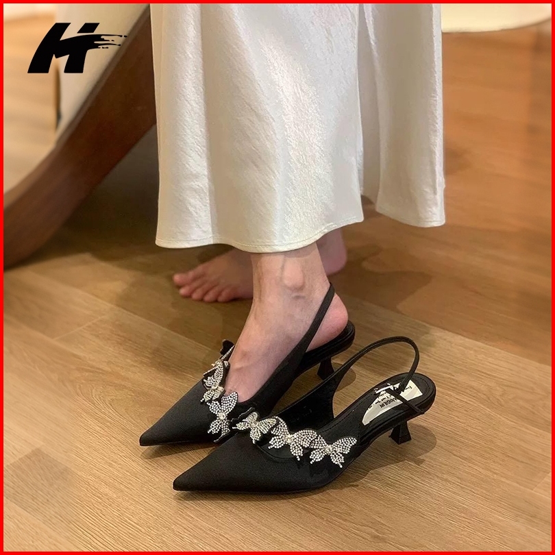 Ht 4cm Heels Sandal Sepatu Pesta Wanita Mode Korea Sandal Hak Tinggi Berujung Runcing Kristal