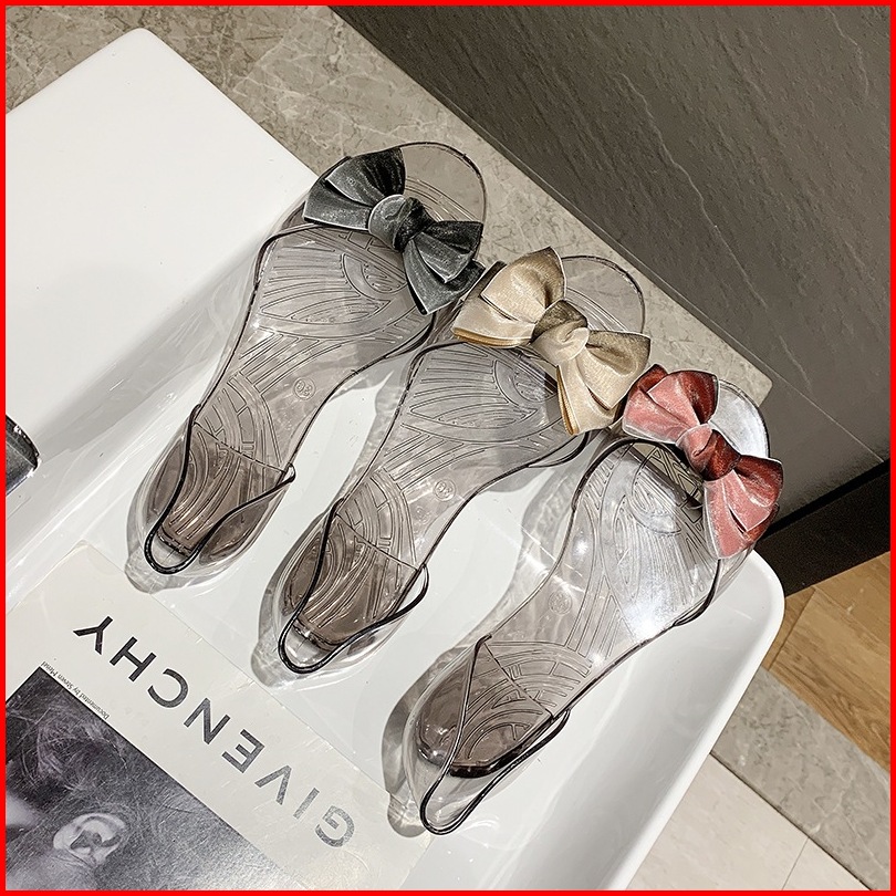Ht Sandal Transparan Pita Satin Jelly Shoes Kekenyalan Sandal Wanita Datar Payet Kekenyalan