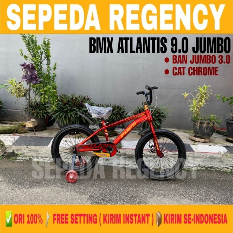 Sepeda Anak Laki BMX ATLANTIS 9.0 Chrome Ban Jumbo 3.0 Ukuran 12 16 18 Inch Usia 2-8 Tahun Musik Lampu Rem Cakram