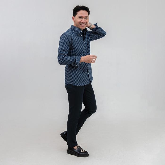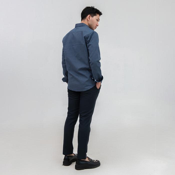 Kemeja Kotak Garis Pria WOODCUTTER Plaid Basic Shirt - Navy Blue Lengan Panjang