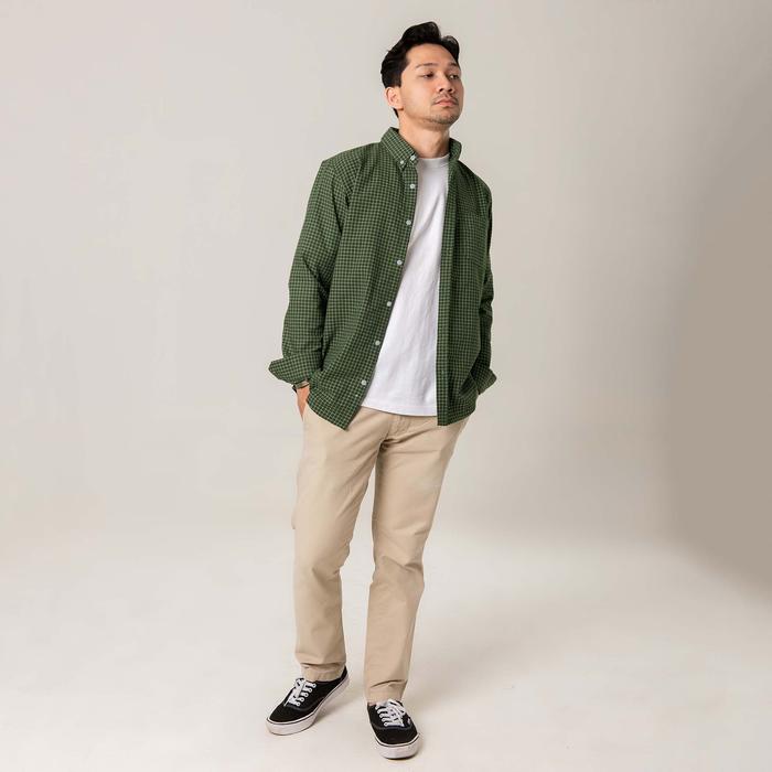 Kemeja Kotak Garis Pria WOODCUTTER Plaid Basic Shirt - Green Lengan Panjang