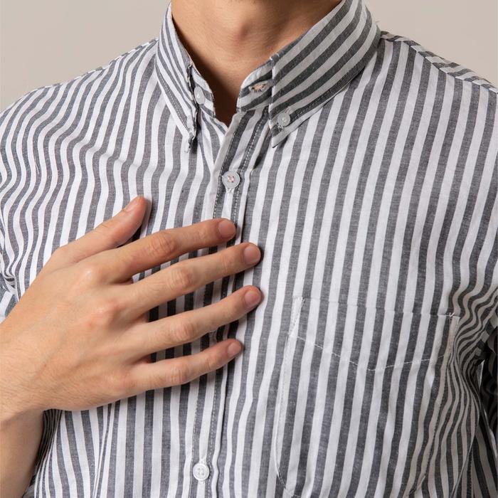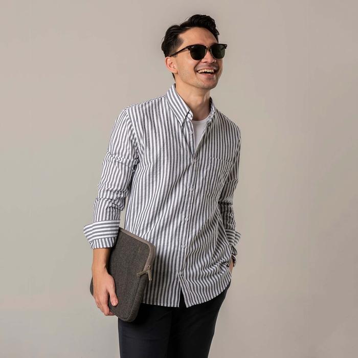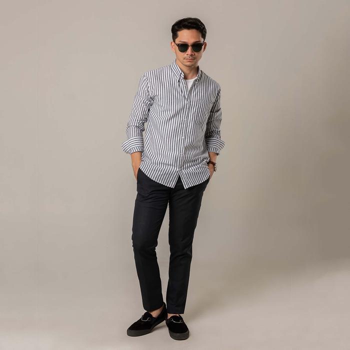 Kemeja Pria Garis WOODCUTTER Basic Butcher Stripe - Dark Grey Lengan Panjan