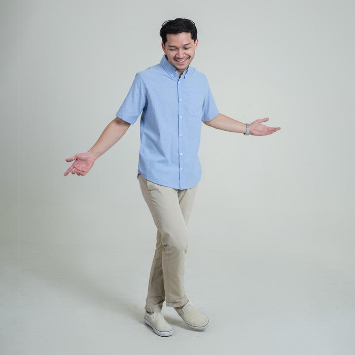 Kemeja Polos Pria Oxford WOODCUTTER Basic Shortsleeve - Light Blue Biru Muda Lengan Pendek Kerja