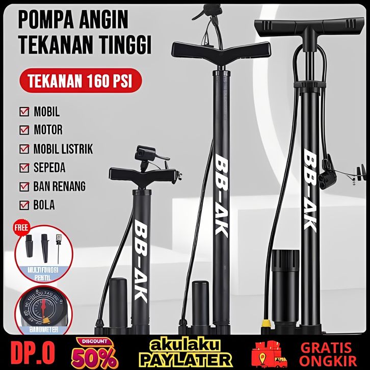 Pompa Ban Angin Motor Sepeda Mobil Tabung Meter Black High Pressure Portable Pengisian Akurat
