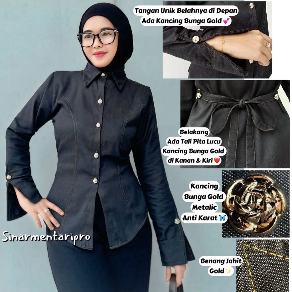 Smpro - Whispey Jeans Baju Kemeja Jeans Kancing Bunga Baju Atasan Wanita Jeans Tebal Tangan Panjang
