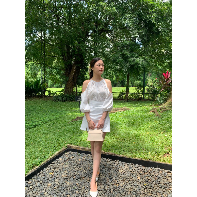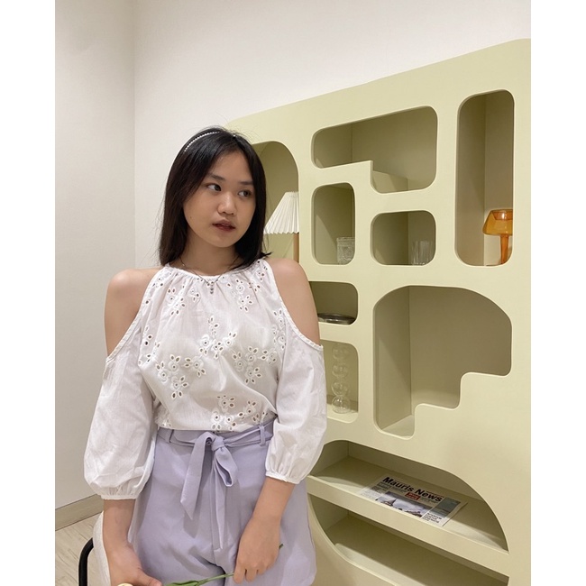 Nuoir Deluna Top L Off Shoulder Top | White Blouse Lengan Panjang Wanita