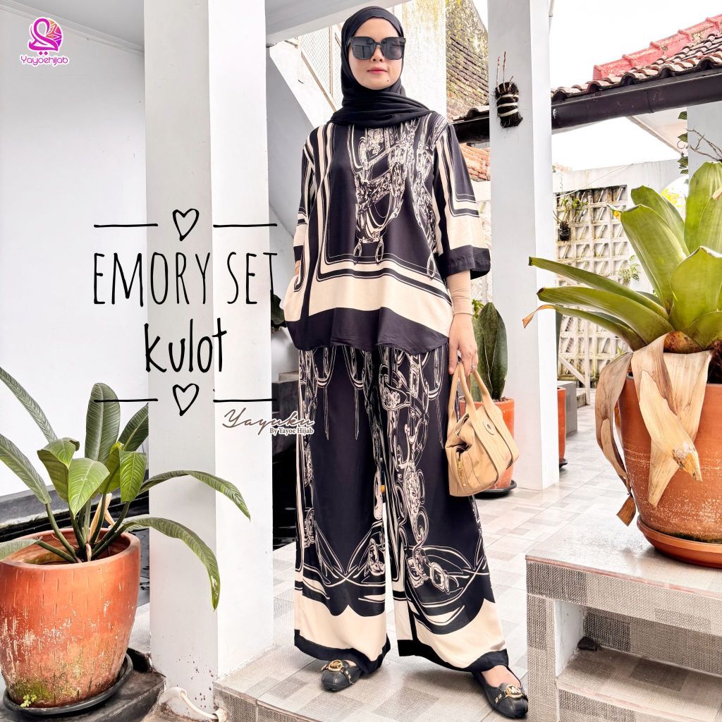 Emory Setelan Celana Kulot Jumbo Rayon Motif Baju Dewasa Wanita OneSet Adem Busui Friendly Yayuku