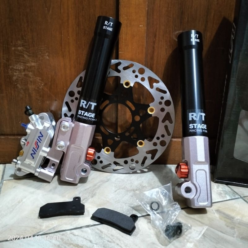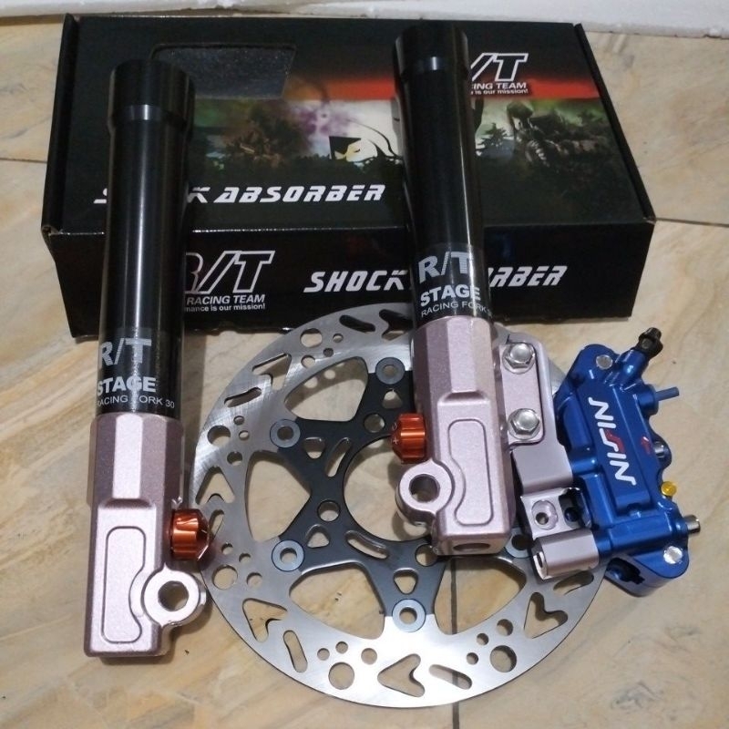 Paketan Rem Depan Komplit+Tabung Shock Rt Stage Monoblock 220Mm Mio/Miosmile/Miosoul/Fizr/Mx/Jupiter/Vega/Nuovo/Vega Zr