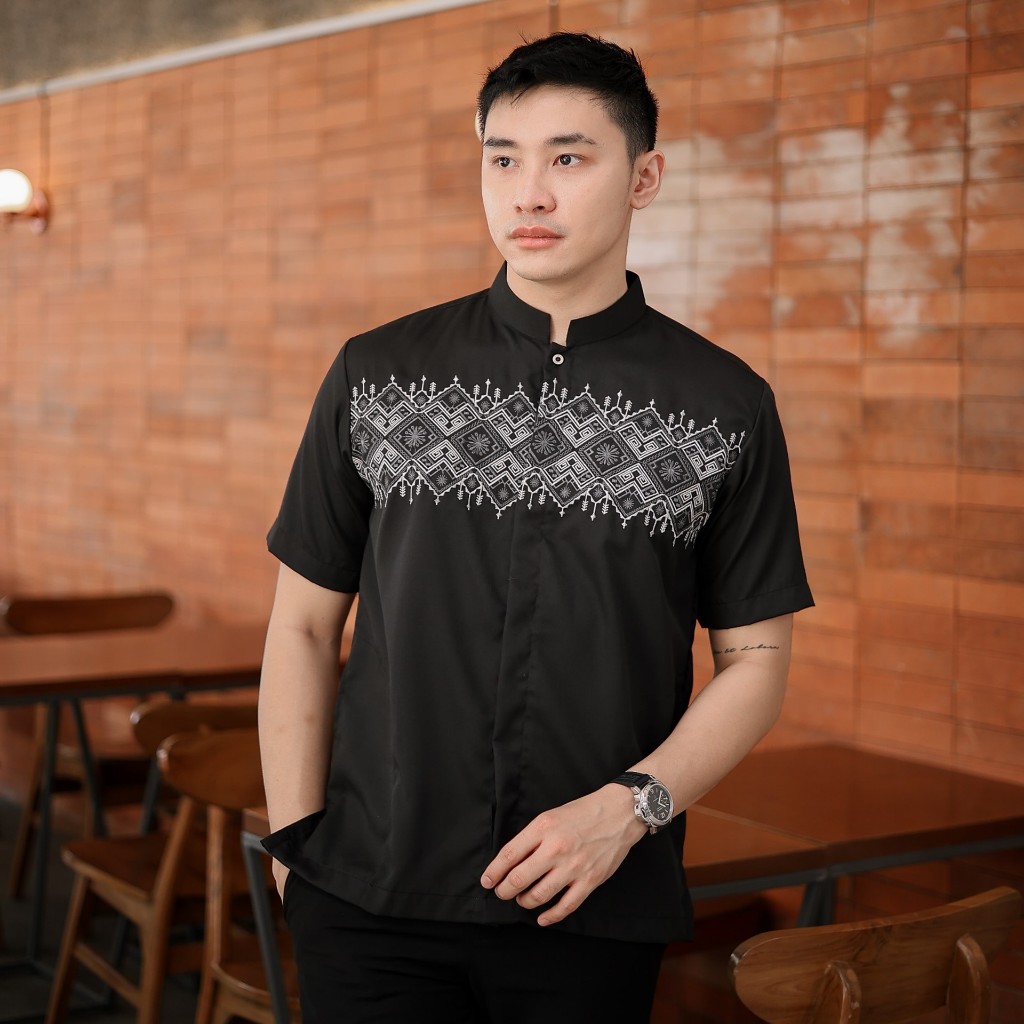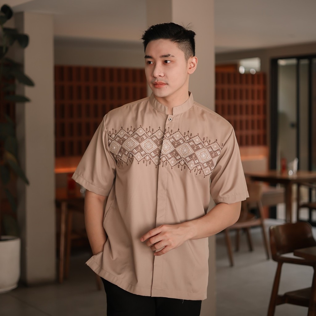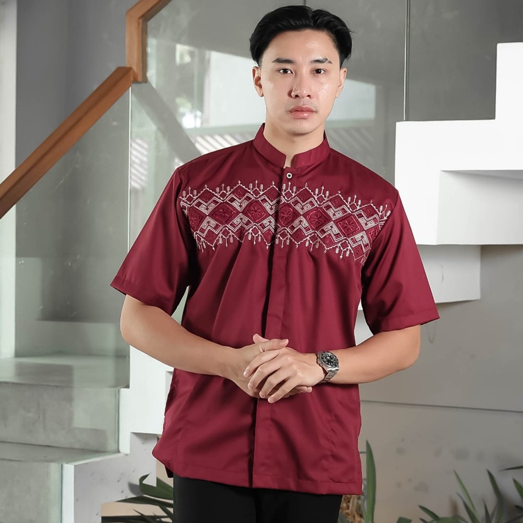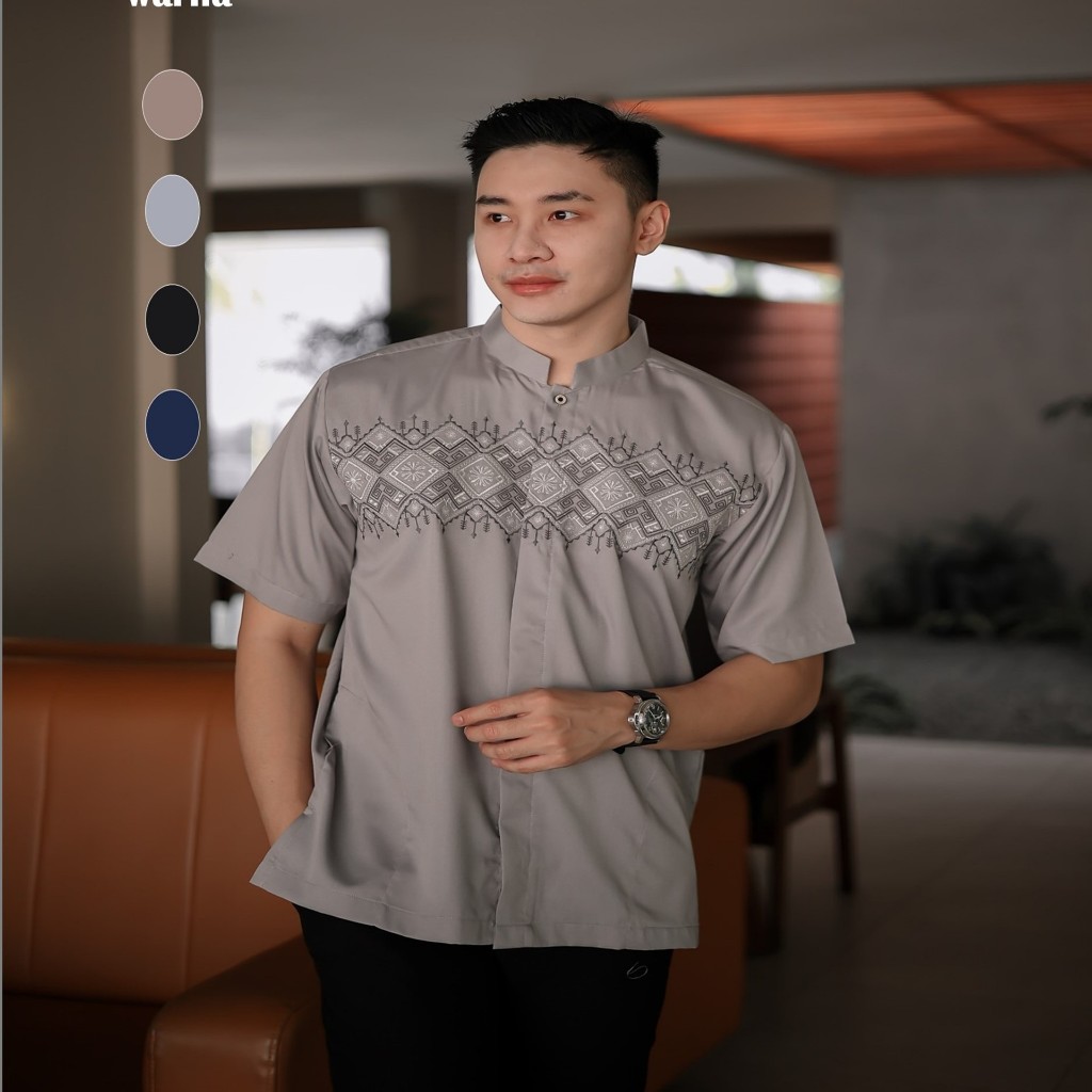 baju koko muslim bordir pria dewasa tangan pendek bahan katun toyobo warna