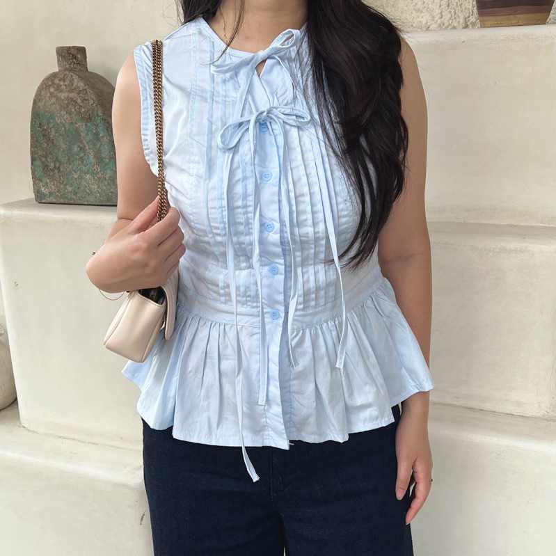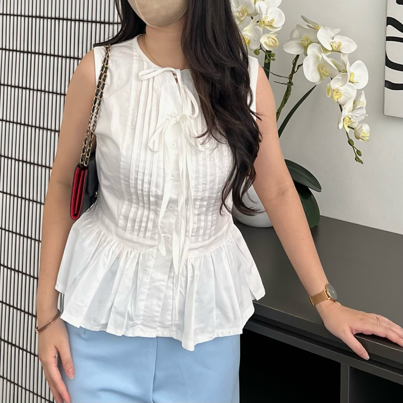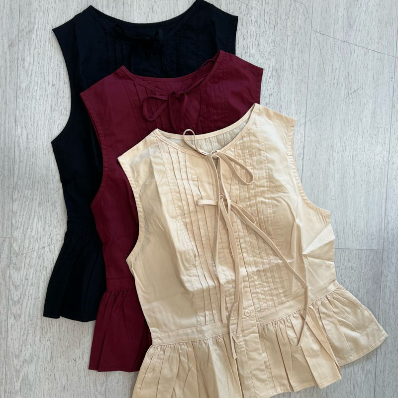 New Arrival Candy Korean Coquette Fitted Top Maroon Black Atasan Ribbon Blouse Korea Peplum White Beige Blouse Pita Hita