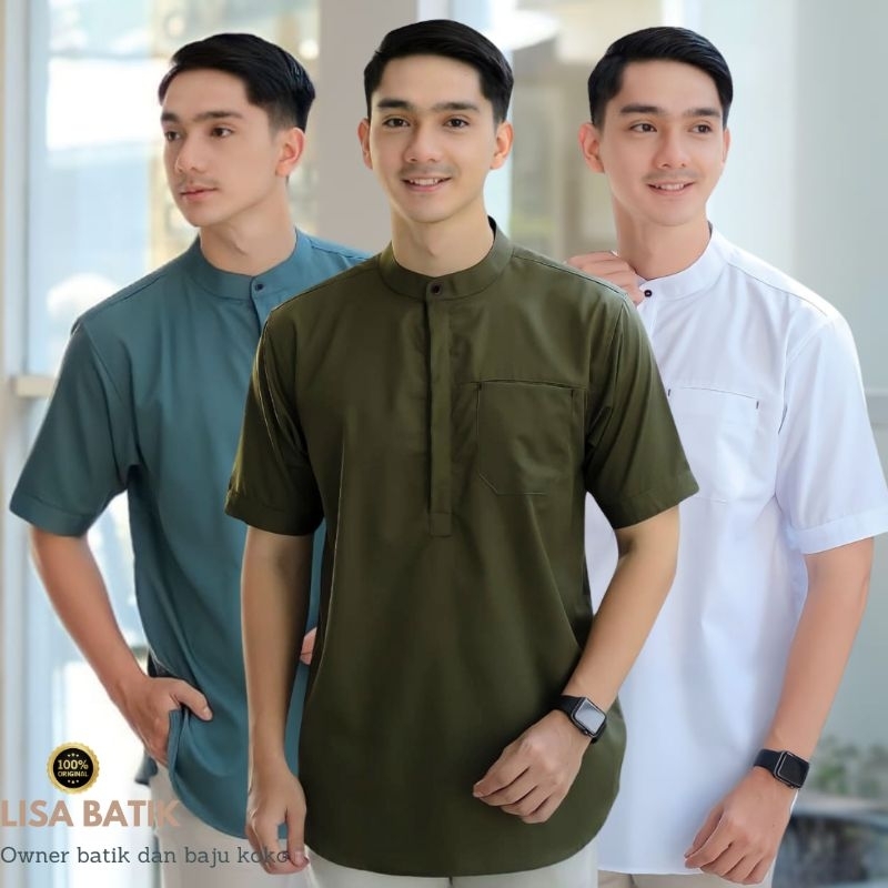 BAJU KOKO KURTA PAKISTAN PAKAIAN MUSLIM PRIA BAHAN TOYOBO IMPORT WARNA NAVY HITAM OLIVE PINK ABU TERANG