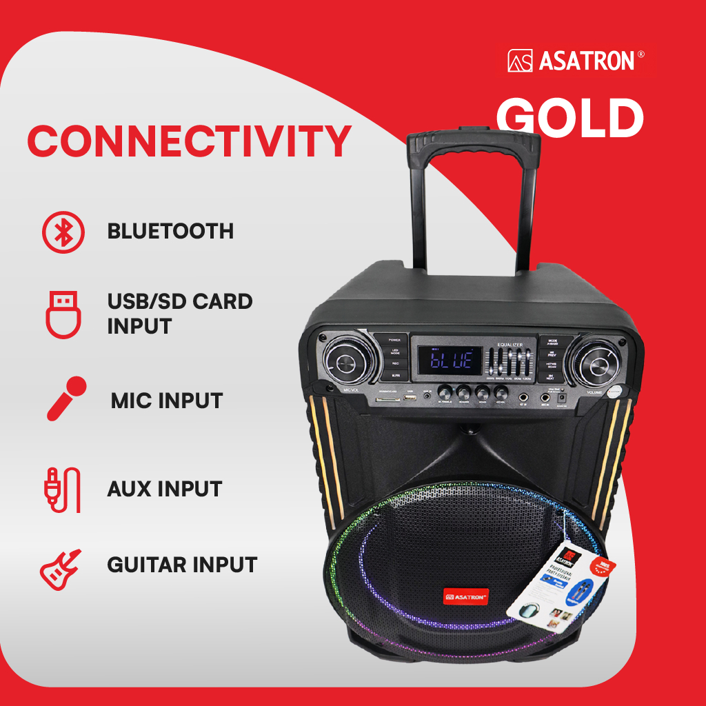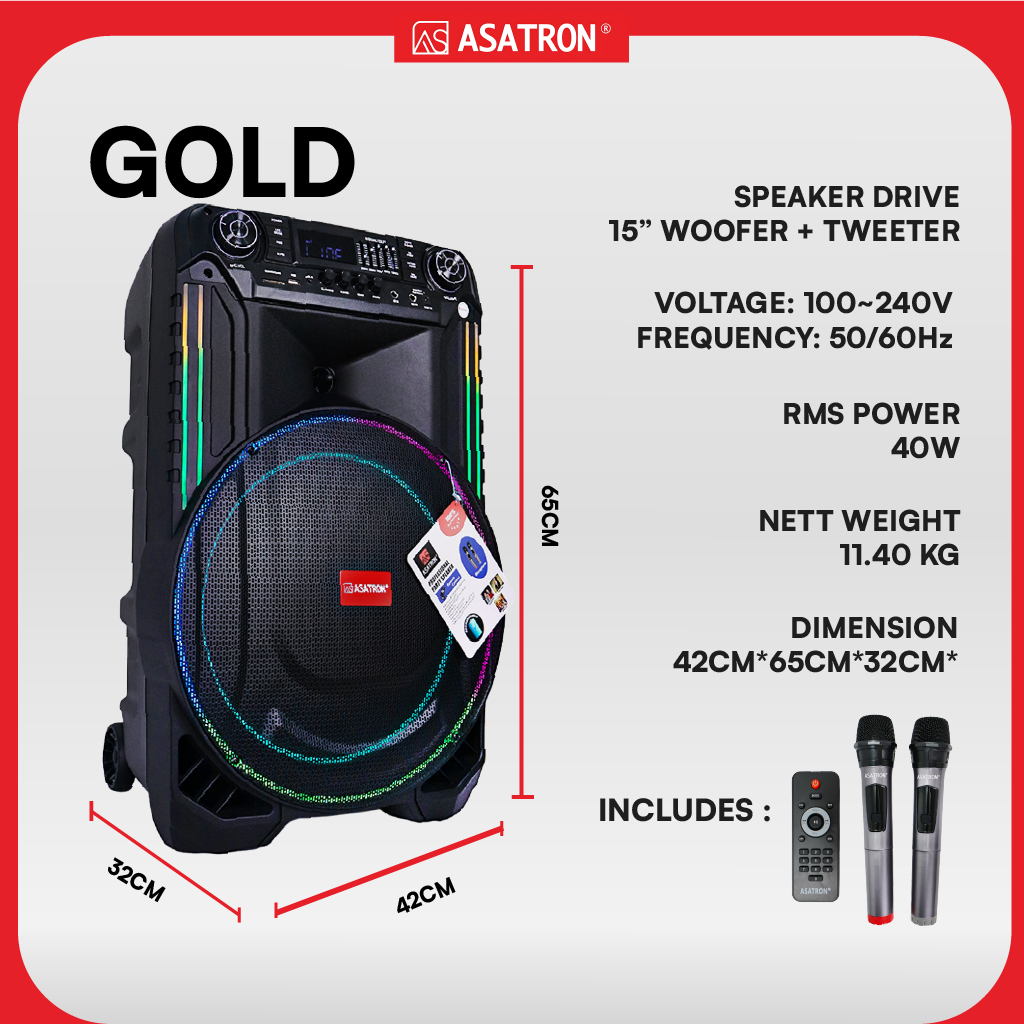 Asatron Gold 15 Inch Bluetooth Karaoke Party Speaker with Wireless Mic TWS