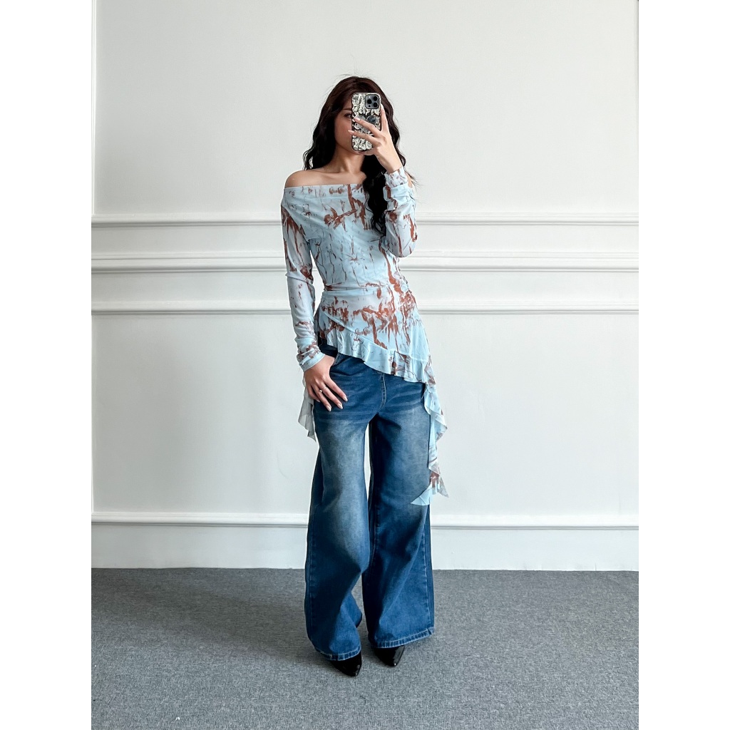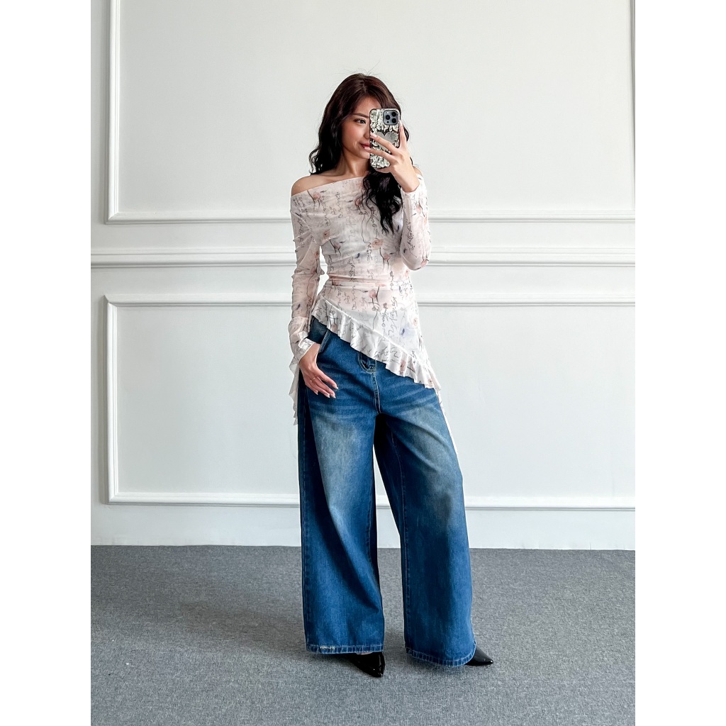 Dolla - Janesy Top Y2K Transparan Atasan Ruffle/Rumbai Sabrina
