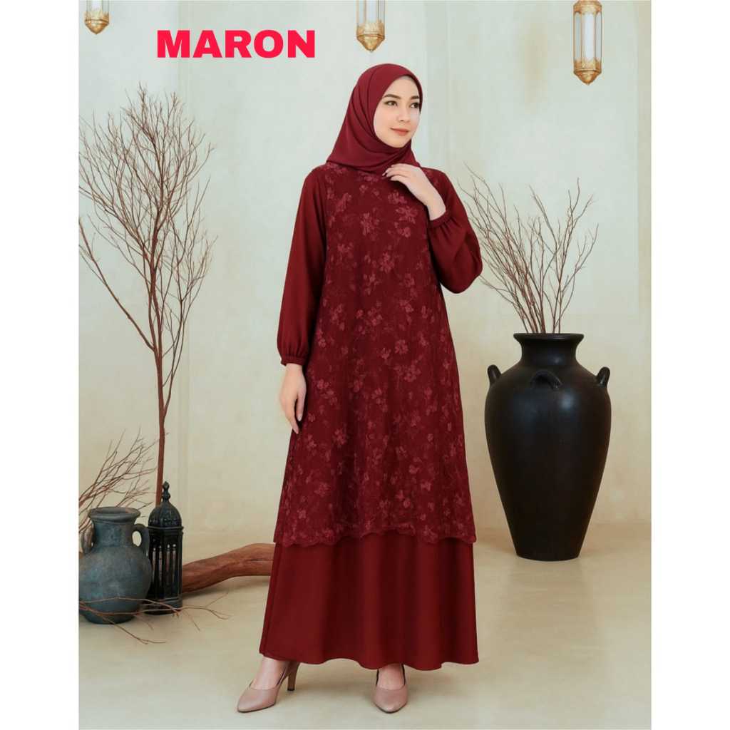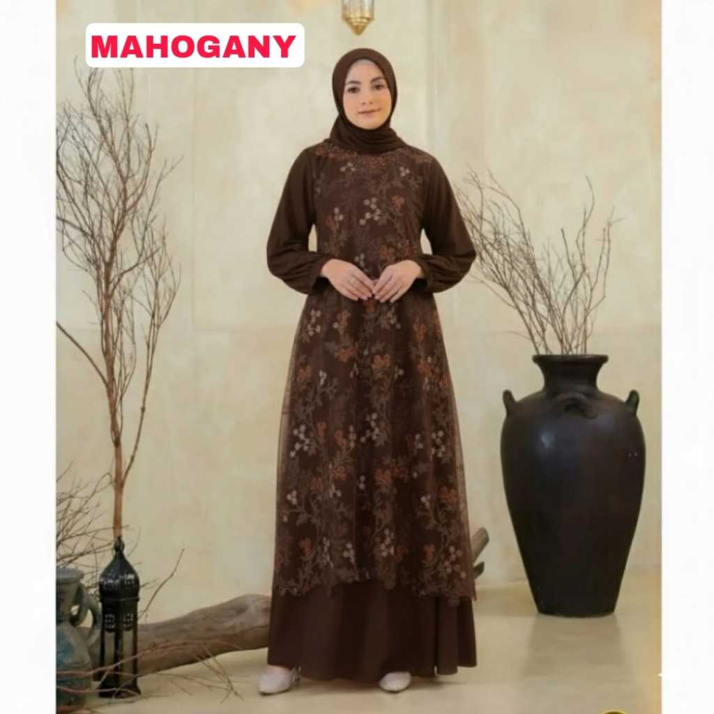 Amytha Dress / Baju kondangan wanita kekinian / Gamis pesta mewah elegan / Gamis Mahogany 2025