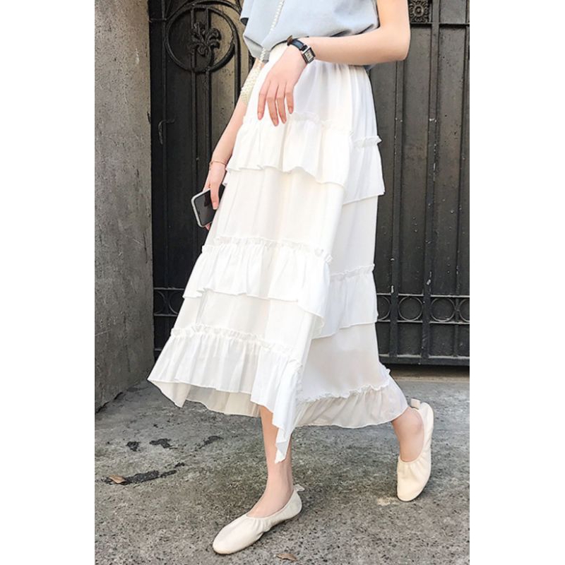Dara Skirt - Rok Panjang Layer Ruffle Wolpis Ala Korea, Elegant Casual Maxi Skirt Wanita