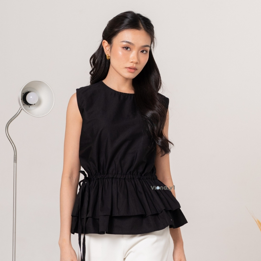 Hera Inner Blouse Ruffle Katun Balloon Ada Tali / Blouse Balon Kutungan Korean Style Tanpa Lengan E.239