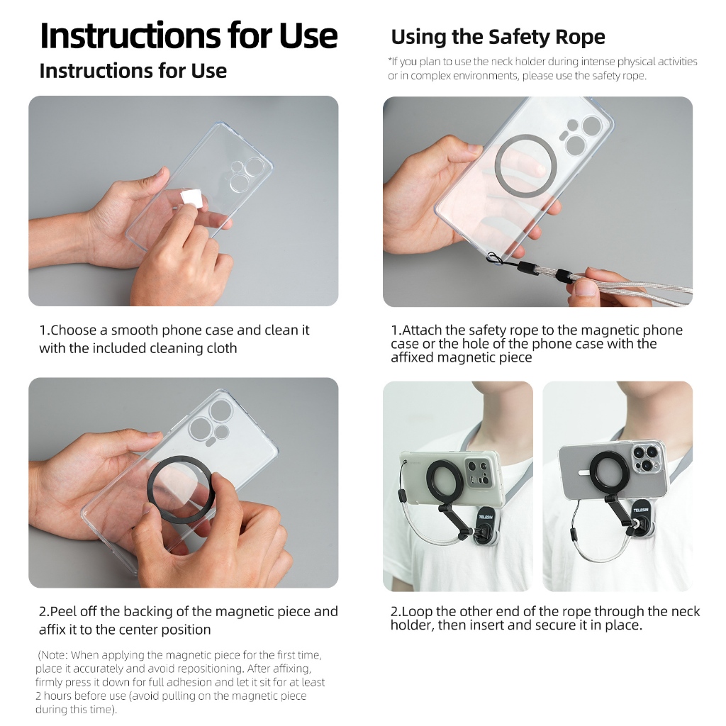 Telesin Silicone Barket Phone Neck Mount Magnetic Quick Release Holder For Smartphone Accessories