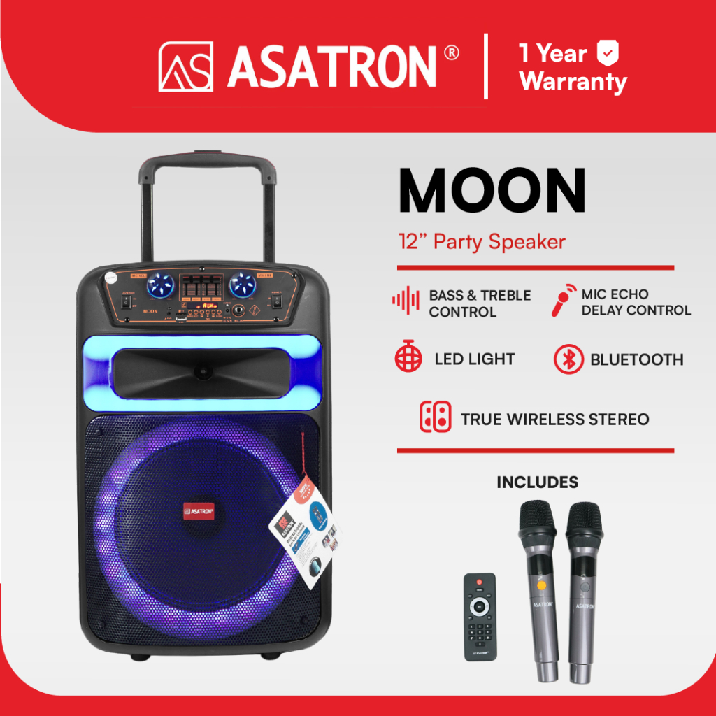 Asatron Moon 12 Inch Bluetooth Party Speaker with 2 Wireless Mic TWS