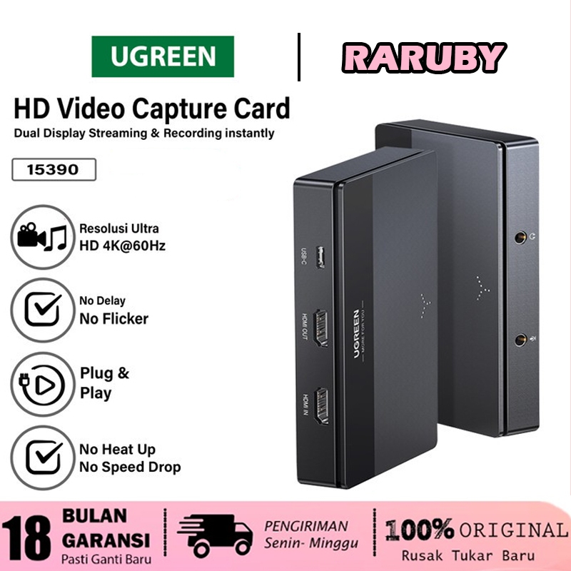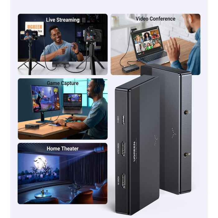 Ugreen 15390 Video Capture Card Hdmi 4K For Game Video Streaming Record Obs Ps4 Xbox Pc Komputer
