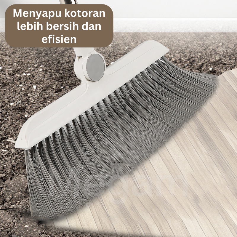 Set Dustpan Stainless Steel Minimalis Sapu Set Pengki Alat Pembersih Lantai Modern Serbaguna HSB648