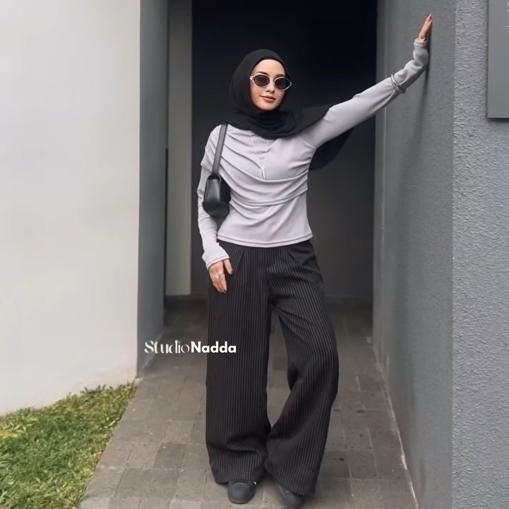Nadda - Rui Pants / Celana Panjang Wanita Straight Stripe Polos Kulot Trousers Salur Daily Pants