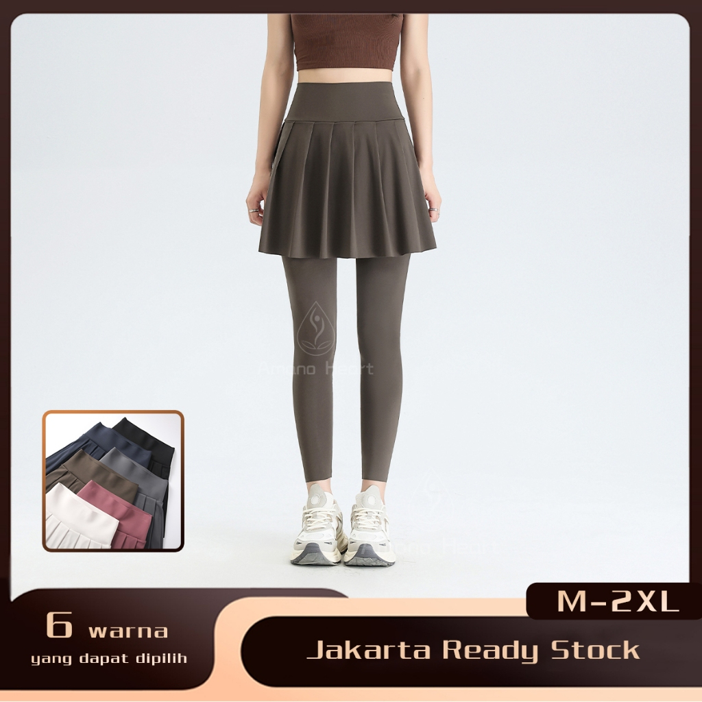 Rok Celana Yoga 2 In 1 Hitam Biru Putih Sporty High Waist Legging Gym Jogging Bawah Celana Kulot Rok Lipit O
