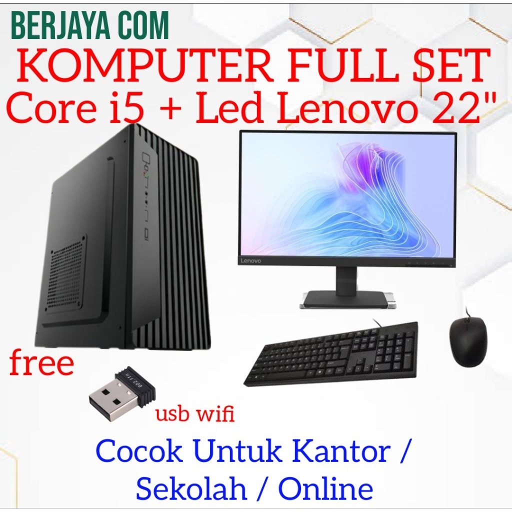 (Gratis Ongkir) Full set Core i5 - Led Lenovo 22" - 16gb Ram - 500gb Ssd - Komputer Rakitan - Pc Kantor - Cpu Sekolah