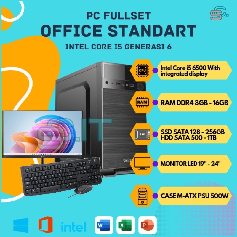 (Gratis Ongkir) PC RAKITAN INTEL CORE I5 GENERASI 6 DDR4 KOMPUTER KANTOR DESKTOP STANDART OFFICE