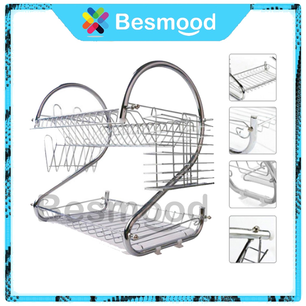 Besmood Rak Piring stainless 2 Susun Minimalis Baja Kuat