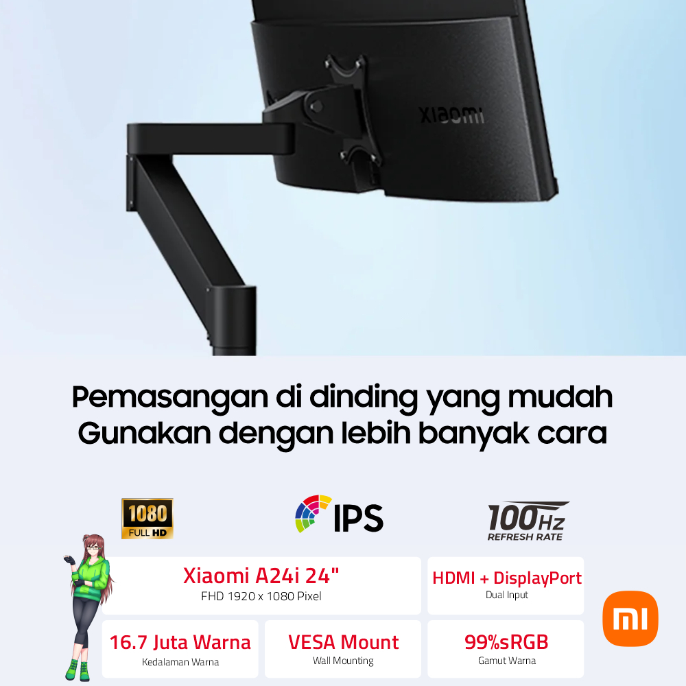 (Gratis Ongkir) Monitor Xiaomi 24" A24i Full HD IPS 100Hz HDMI DisplayPort Vesa Mount Borderless