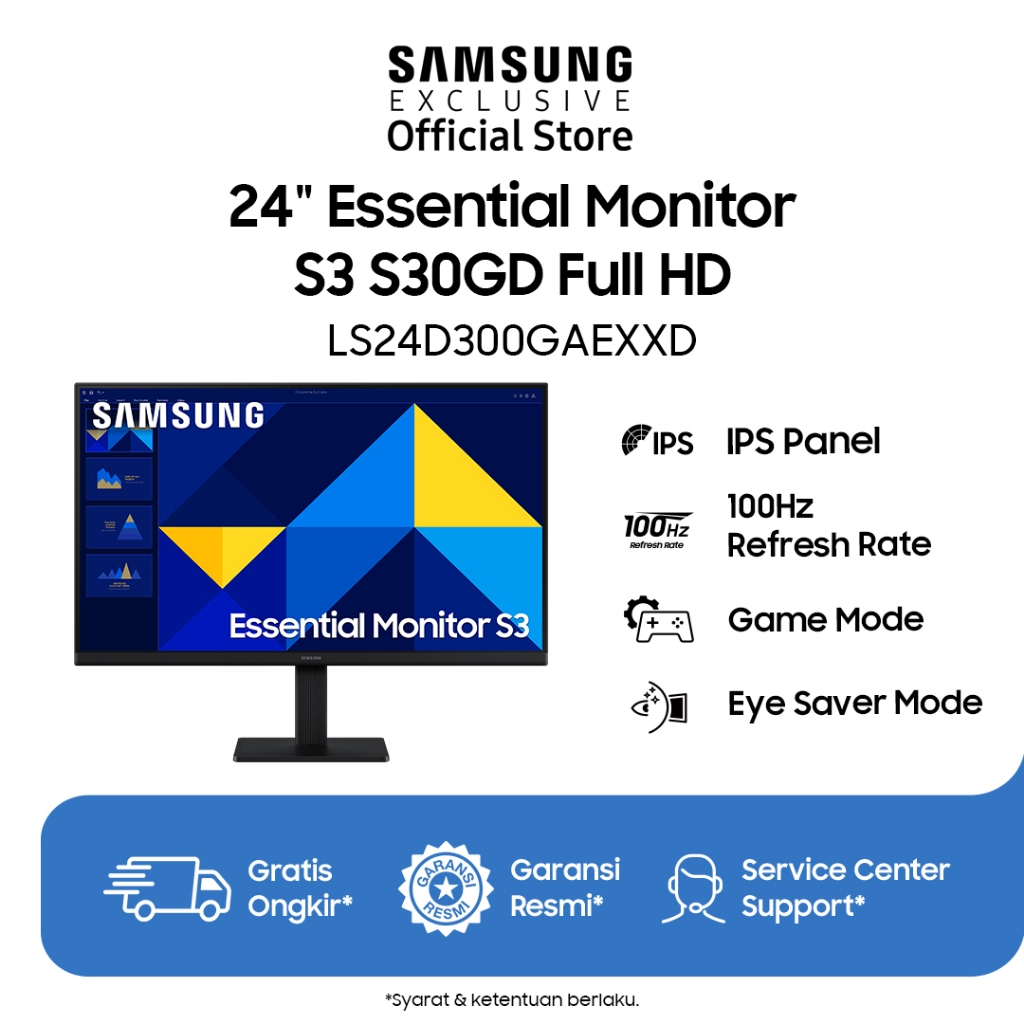 (Gratis Ongkir) Samsung Essential Monitor 24" S3 S30GD Full HD - LS24D300GAEXXD