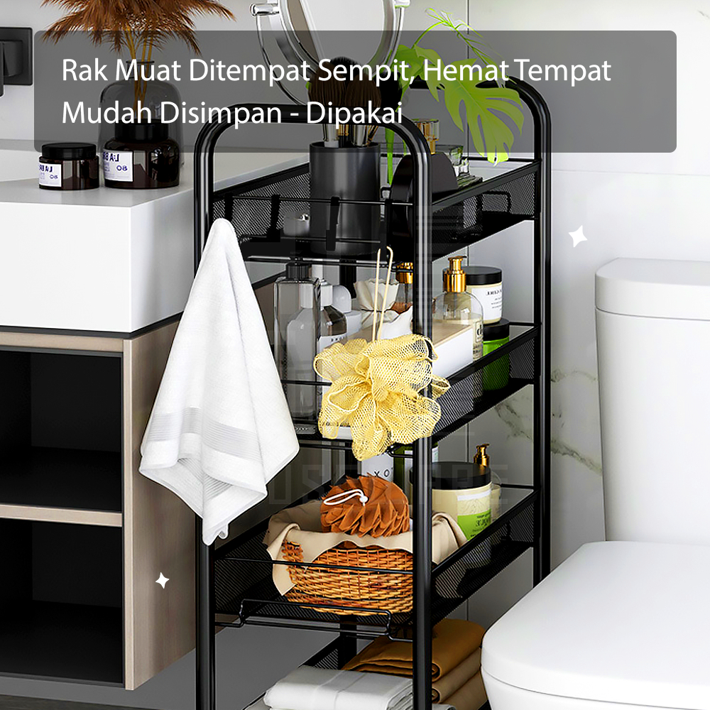 Rak Dapur Besi Serbaguna Rak Troli Besi Penyimpanan Bertingkat Rak Kamar Mandi Rak Salon Rak Besi Susun Dorong denga