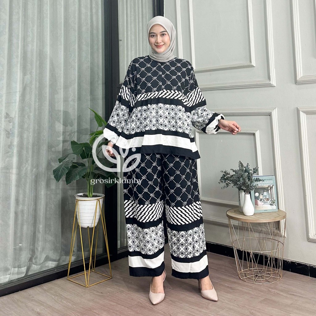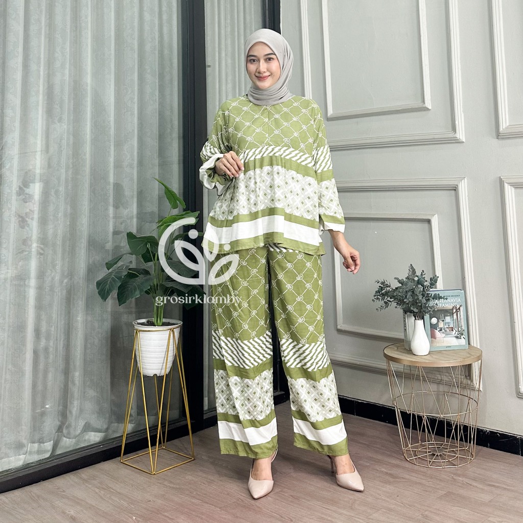 One Set Amala Couple Ibu Anak Rayon Batik Premium Rempel Busui Setelan Atasan Bawahan Wanita Celana Kulot Panjang Adem Nyaman Tebal