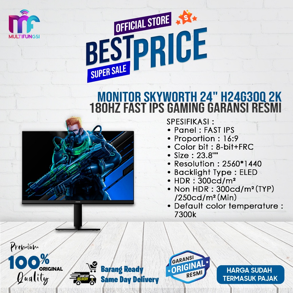 (Gratis Ongkir) Monitor Skyworth 24" H24G30Q 2K 180Hz Fast IPS Gaming Garansi Resmi
