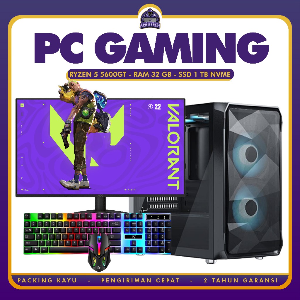 (Gratis Ongkir) AEROTECH MIDDLE PC RAKITAN GAMING RYZEN 5 5600GT RAM 32 GB / SSD 1 TB NVME LED 24 INCH FULLSET SIAP PAKAI
